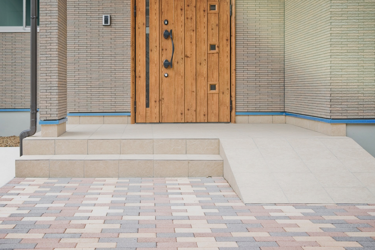 玄関ポーチ自体に段差がある家では、ポーチ部分を「緩やかな階段状」に造り替えることでスロープに近いアプローチにすることができます。