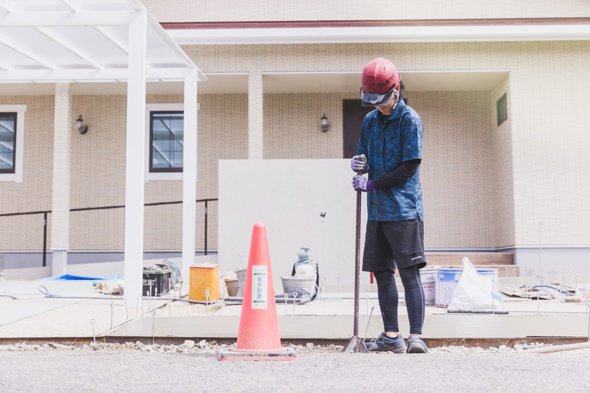 新築時に駐車場をコンクリートで舗装している場合、柱を立てるために土間を一度壊して基礎穴を掘る工程が入ることがあります。