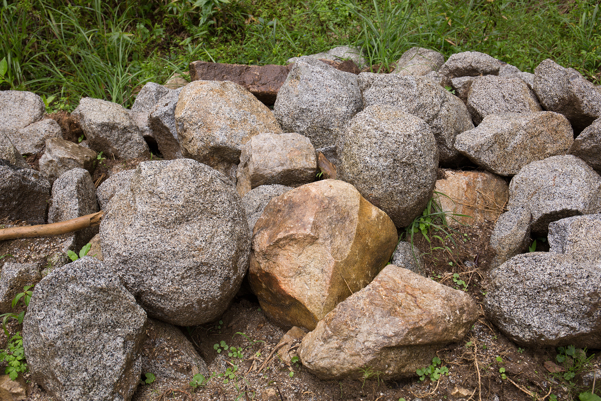 形の良い石は花壇の縁取りや飛石に、砕けた石は植栽のアクセントに使えることも多いです。