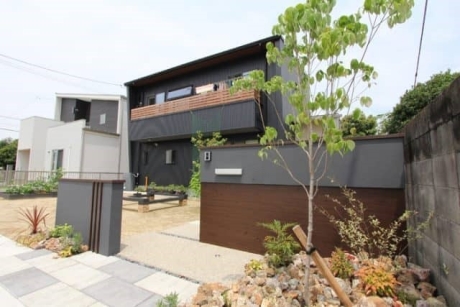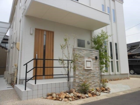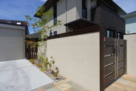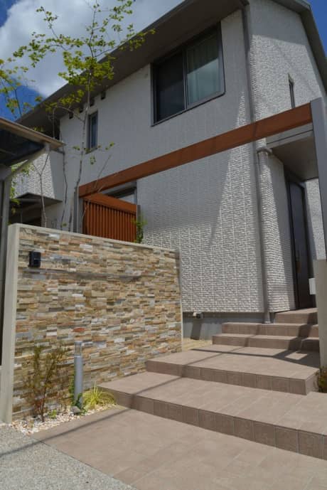 イタリアタイルと+Gアーチを使った雑草対策のあるモダン外構 清須市N様邸 LIXIL2017年施工コンテスト銅賞作品 門・アプローチ庭・植栽駐車場・カーポート モダン外構シンプルモダン門柱・タイル愛知県清須市