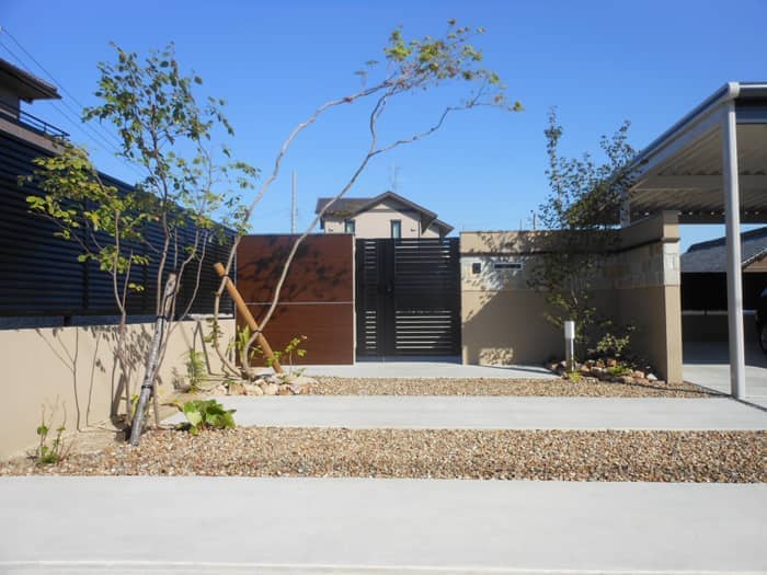 小牧市 S様邸 自然樹形のもみじがある門まわり 投稿日:2014.10.29 最終更新日:2025.09.14 新築外構クローズ外構ナチュラル外構門・アプローチ庭・植栽門扉・門柱植栽・植木駐車場・カーポートカーポートガレージ愛知県小牧市 広い敷地とのバランスを第一に考えました。 特に門の高さや幅、使用した材料にもこだわりました。 門まわりを彩る植栽には、自然樹形のもみじを植樹し、 どうしても硬くなりがちな門まわりに柔らかさをプラスしています。 施工概要 施工タイプ新築外構施工内容門・アプローチ, 庭・植栽, 門扉・門柱, 植栽・植木, 駐車場・カーポート, カーポート, ガレージ外構デザインクローズ外構, ナチュラル外構エリア愛知県, 小牧市 事例一覧へ戻る この記事をシェアする