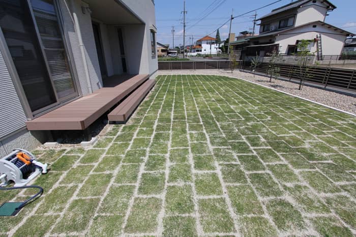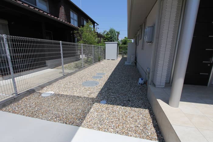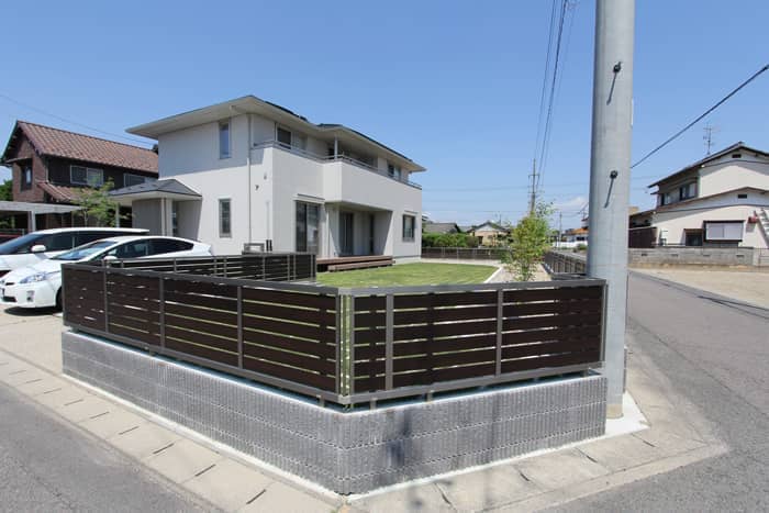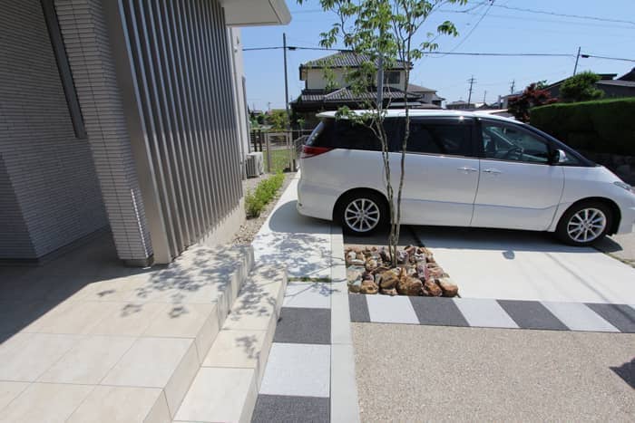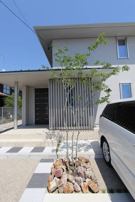 江南市 O様邸 ダイワハウスのエクステリア 投稿日:2015.06.14 最終更新日:2025.09.14 新築外構オープン外構モダン外構ナチュラルモダンテラス・デッキウッドデッキ門・アプローチ塀・フェンスフェンス庭・植栽天然芝・人工芝門扉・門柱植栽・植木駐車場・カーポートカーポートダイワハウス愛知県江南市 敷地が広く駐車場も4台分有り、来客時にも活躍しています。 玄関の正面に門柱を配置してその間にシンボルツリーがあり、 感じ良くまとまっています。 門柱は少しゴージャスに天然石を貼り存在感を出しています。 フェンスは木調半目隠しタイプを採用して、少し見えにくくしています。 ▲Before 施工概要 施工タイプ新築外構施工内容テラス・デッキ, ウッドデッキ, 門・アプローチ, 塀・フェンス, フェンス, 庭・植栽, 天然芝・人工芝, 門扉・門柱, 植栽・植木, 駐車場・カーポート, カーポート外構デザインオープン外構, モダン外構, ナチュラルモダン住宅メーカーダイワハウスエリア愛知県, 江南市 事例一覧へ戻る この記事をシェアする