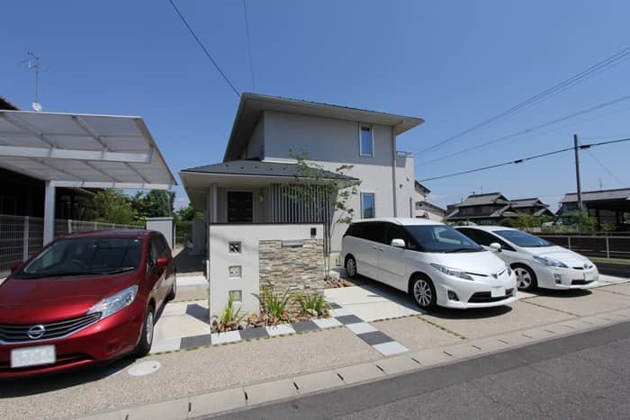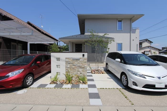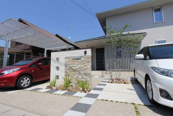 江南市 O様邸 ダイワハウスのエクステリア 投稿日:2015.06.14 最終更新日:2025.09.14 新築外構オープン外構モダン外構ナチュラルモダンテラス・デッキウッドデッキ門・アプローチ塀・フェンスフェンス庭・植栽天然芝・人工芝門扉・門柱植栽・植木駐車場・カーポートカーポートダイワハウス愛知県江南市 敷地が広く駐車場も4台分有り、来客時にも活躍しています。 玄関の正面に門柱を配置してその間にシンボルツリーがあり、 感じ良くまとまっています。 門柱は少しゴージャスに天然石を貼り存在感を出しています。 フェンスは木調半目隠しタイプを採用して、少し見えにくくしています。 ▲Before 施工概要 施工タイプ新築外構施工内容テラス・デッキ, ウッドデッキ, 門・アプローチ, 塀・フェンス, フェンス, 庭・植栽, 天然芝・人工芝, 門扉・門柱, 植栽・植木, 駐車場・カーポート, カーポート外構デザインオープン外構, モダン外構, ナチュラルモダン住宅メーカーダイワハウスエリア愛知県, 江南市 事例一覧へ戻る この記事をシェアする