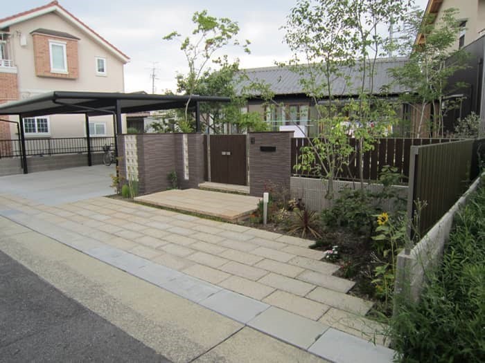 守山区M様邸 和モダンと雑木に囲まれた家 投稿日:2015.08.31 最終更新日:2025.09.09 新築外構クローズ外構モダン外構和モダン門・アプローチ庭・植栽門扉・門柱植栽・植木駐車場・カーポートカーポート愛知県名古屋市 モダン和風の外構施工例です。 LIXIL細割ボーダーの独特のグラデーション、三協アルミのトラッドパイン色、アクセントのウィンドストーンとの相性等をカラーバランスを考えました。 階段は天然の御影石を使用して空きのこないようにしました。 施工概要 施工タイプ新築外構施工内容門・アプローチ, 庭・植栽, 門扉・門柱, 植栽・植木, 駐車場・カーポート, カーポート外構デザインクローズ外構, モダン外構, 和モダンエリア愛知県, 名古屋市 事例一覧へ戻る この記事をシェアする