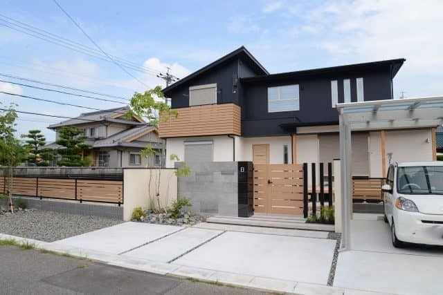 春日井市でおしゃれな外構 黒ガルバが素敵な春日井の家