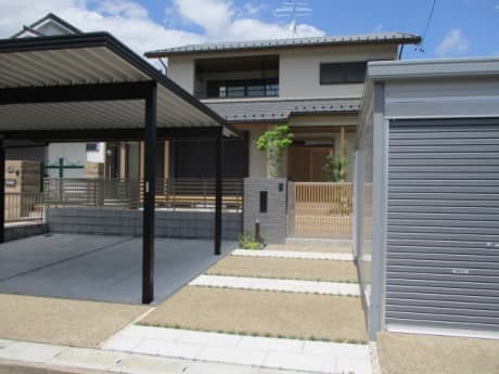 江南市 和モダン新築外構 投稿日:2019.04.25 最終更新日:2025.09.13 新築外構造園・雑木クローズ外構モダン外構和モダン門・アプローチ庭・植栽砂利敷・割栗石門扉・門柱植栽・植木駐車場・カーポートカーポートガレージセッパンカーポート愛知県江南市 <愛知県 江南市 和モダン新築外構> 素材・色彩縦横のラインにこだわり建物に調和するようまとめました。 玄関ポーチ脇の見せ場です。自然の川の流れを模範しました。 玄関脇の和ライトもいい感じです。 アプローチは洗い出し仕上げと御影石で構成しました。 アプローチ横の立水栓です2口タイプですのでホースなどつなげられて便利です。 駐車場には倉庫を作りました。景観的には存在感がありすぎてしまいますが、 機能面ではかなり重宝しますね。 積雪・台風などに強固なガレージです。屋根材はスチール鋼板です。 門はスライド式ゲートを採用しました。デザインは縦格子タイプです。 施工概要 施工タイプ新築外構, 造園・雑木施工内容門・アプローチ, 庭・植栽, 砂利敷・割栗石, 門扉・門柱, 植栽・植木, 駐車場・カーポート, カーポート, ガレージ, セッパンカーポート外構デザインクローズ外構, モダン外構, 和モダンエリア愛知県, 江南市 事例一覧へ戻る この記事をシェアする