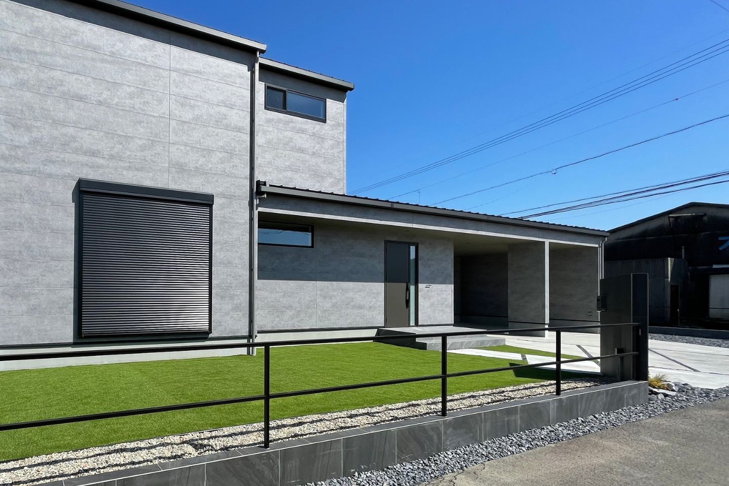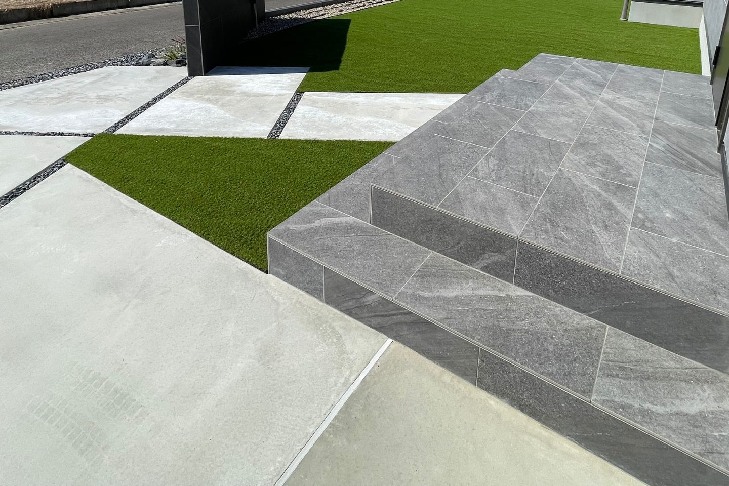 ダークグレー大判タイルが主役!上質なシンプルモダン外構