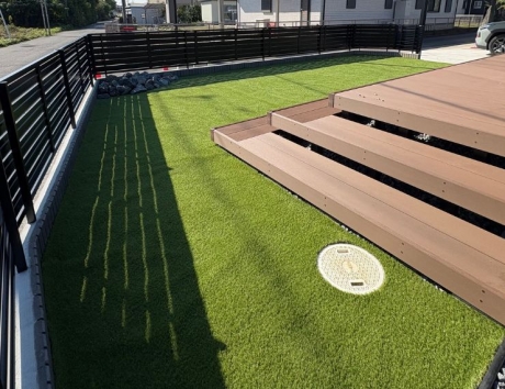 600角 大判タイル門柱|高級感あふれる外構 投稿日:2026.04.09 最終更新日:2026.03.28 新築外構クローズ外構ウッドデッキ塀・フェンス庭・植栽愛知県一宮市 施工概要 施工タイプ新築外構施工内容ウッドデッキ, 塀・フェンス, 庭・植栽外構デザインクローズ外構エリア愛知県, 一宮市 株式会社堀央創建担当者 プランナーのご提案 ✩LIXIL GフレームとフェンスをABで視線をやわらかく遮りました👌 ★600角のタイルを使用した門柱で石目の美しさが際立つ仕上がりに🌿 事例一覧へ戻る この記事をシェアする