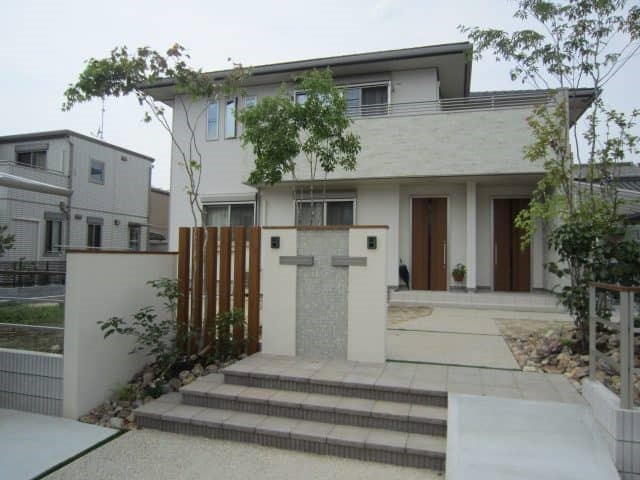 2世帯住宅のオープン外構事例です。