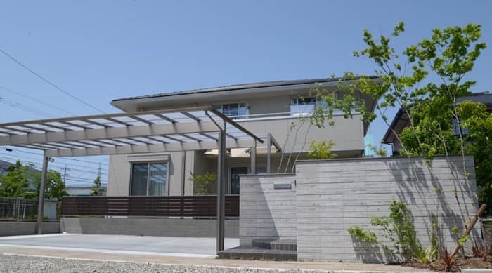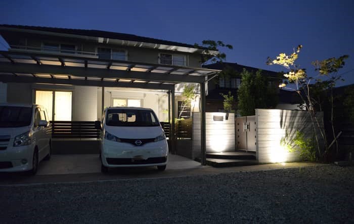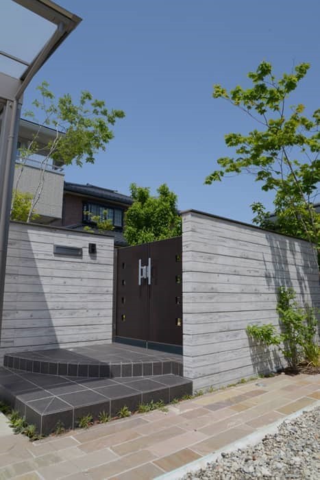 小牧市N様邸 木目調ブロックを使った外構工事 投稿日:2014.06.22 最終更新日:2025.09.08 新築外構クローズ外構モダン外構クールモダン門・アプローチライティング・間接照明門扉・門柱駐車場・カーポートカーポート積水ハウス愛知県小牧市 小牧市N様邸 南向き敷地で駐車場3台分のクローズ外構のご紹介 デザインコンセプトは敷地やカーポート(3台分)というのもあって水平ラインに拘りデザインしてみた。 正面の門袖塀はユニソン リピアを使用(現在廃盤) より水平を強調すべく天端にアルミ笠置を配置(ユニソン) 道路(今は砂利舗装)境界線付近にインド産の天然石145幅の細い石材を間口全てに配置 水平ラインを途中で切りたくなかったので門扉は正面でなく直角に配置して正面からは見えないようにした。 また目隠しデザインフェンスも横桟タイプに。 施工概要 施工タイプ新築外構施工内容門・アプローチ, ライティング・間接照明, 門扉・門柱, 駐車場・カーポート, カーポート外構デザインクローズ外構, モダン外構, クールモダン住宅メーカー積水ハウスエリア愛知県, 小牧市 事例一覧へ戻る この記事をシェアする