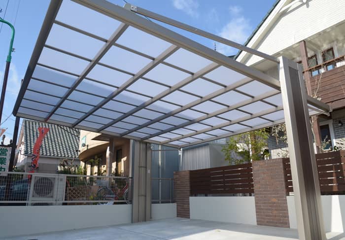 カーポートは前柱の無く出入りがしやすいタイプ(LIXILアーキフラン)を使用。