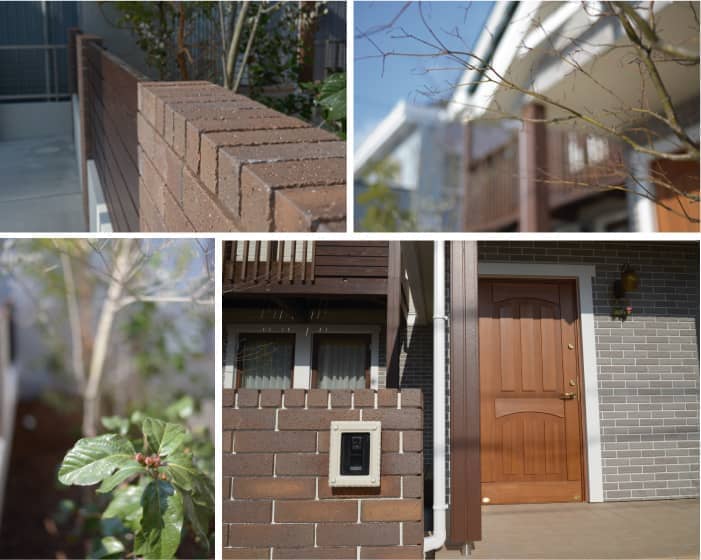 レンガ調タイルをアクセントに木目、茶色、白にまとめてデザインしました。