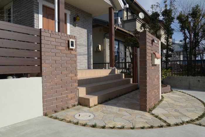 門袖壁を2枚にして互い違いにして配置して見えにくくなりました。