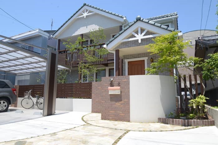 カーポートは前柱の無く出入りがしやすいタイプ(LIXILアーキフラン)を使用。