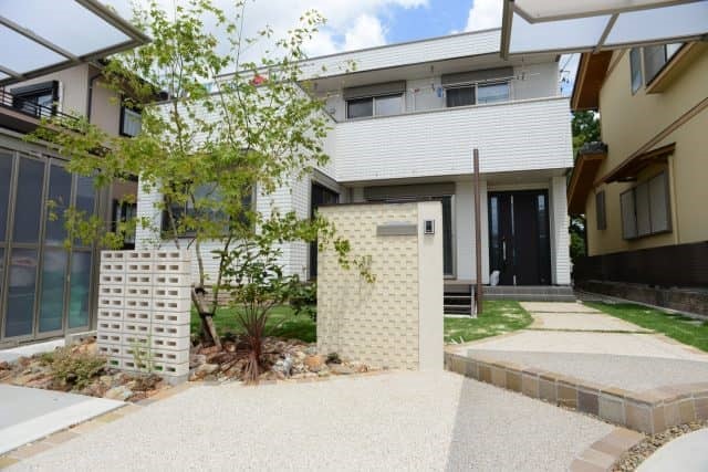 ガレージ(スタイルコート)のあるヘーベルハウスの家~大口町M様邸~ 投稿日:2016.08.04 最終更新日:2025.09.16 新築外構オープン外構モダン外構ナチュラルモダン門・アプローチライティング・間接照明門扉・門柱駐車場・カーポートカーポートガレージ門柱・ジョリパットヘーベルハウス愛知県大口町 大口町M様邸 ハウスメーカーは旭化成ヘーベルハウスでご建築 ナチュラルモダンなデザイン 参考工事価格400万円以上 スクリーンブロックと凹凸タイルの対照的な照明効果 夜は夜でテンションが上がる落ち着いたデザインと照明 開放的で使いやすく、カーポートで雨天でも便利な機能。 アプローチに使用したインド砂岩を使用してナチュラルモダン LIXILスタイルコートの内部にライトアップ用照明 施工概要 施工タイプ新築外構施工内容門・アプローチ, ライティング・間接照明, 門扉・門柱, 駐車場・カーポート, カーポート, ガレージ外構デザインオープン外構, モダン外構, ナチュラルモダン住宅メーカーヘーベルハウスエリア愛知県, 大口町 事例一覧へ戻る この記事をシェアする