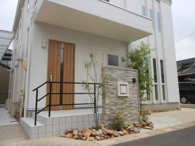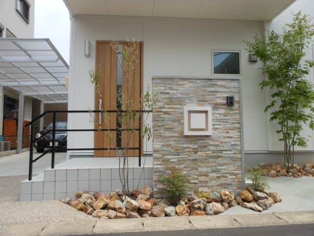 幾何学的デザイン門柱 投稿日:2017.04.28 最終更新日:2025.09.16 新築外構モダン外構ナチュラルモダン門・アプローチアプローチ庭・植栽門扉・門柱植栽・植木門柱・タイル愛知県江南市 お世話になります。 GWも始まり春らしい天候になってなってきました。なかなか現場の写真撮影にいけてなかったですが 本日ようやく撮影にお伺いできました。 新緑がとても綺麗でとても良い雰囲気です 🙂 ご近所様からもお褒めいただきうれしくおもいます。 幾何学的ポスト 幾何学的表札 斜めに配置した天然石アプローチ 玄関先にはシンボルツリーを・・・ 施工概要 施工タイプ新築外構施工内容門・アプローチ, アプローチ, 庭・植栽, 門扉・門柱, 植栽・植木外構デザインモダン外構, ナチュラルモダンエリア愛知県, 江南市 事例一覧へ戻る この記事をシェアする