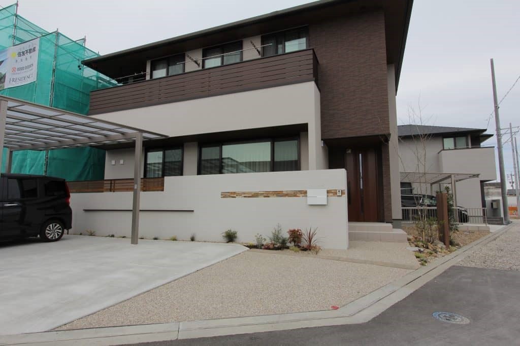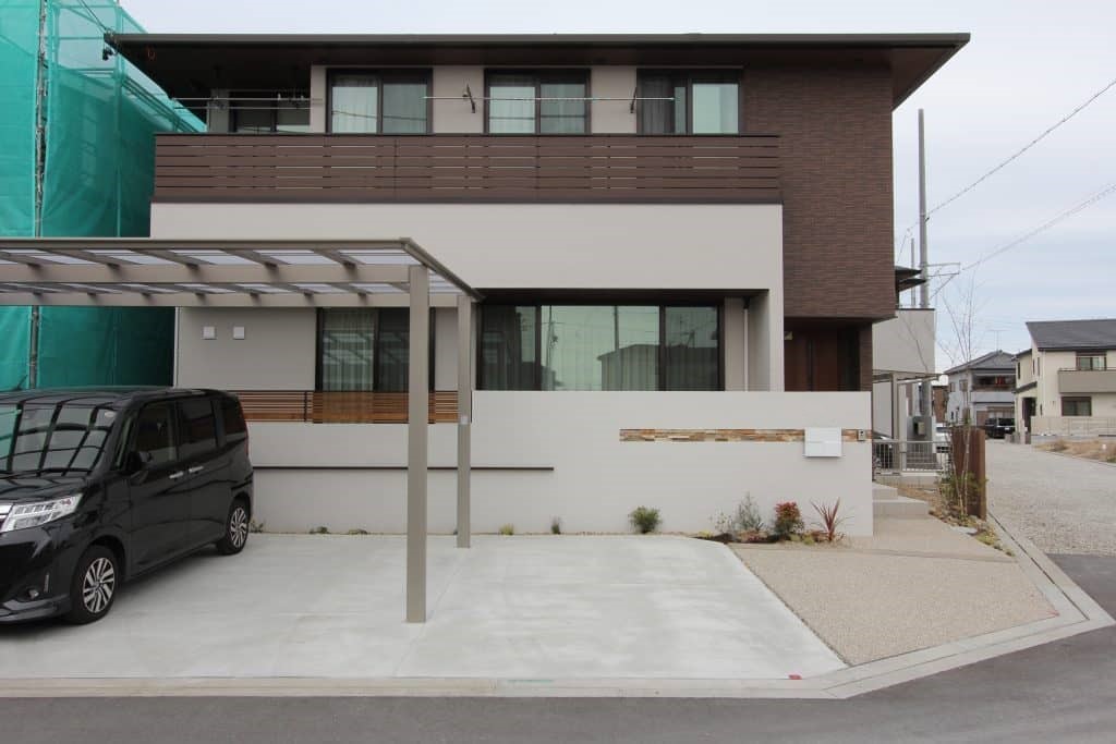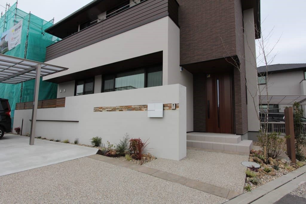 イタリアタイルと+Gアーチを使った雑草対策のあるモダン外構 清須市N様邸 LIXIL2017年施工コンテスト銅賞作品 門・アプローチ庭・植栽駐車場・カーポート モダン外構シンプルモダン門柱・タイル愛知県清須市