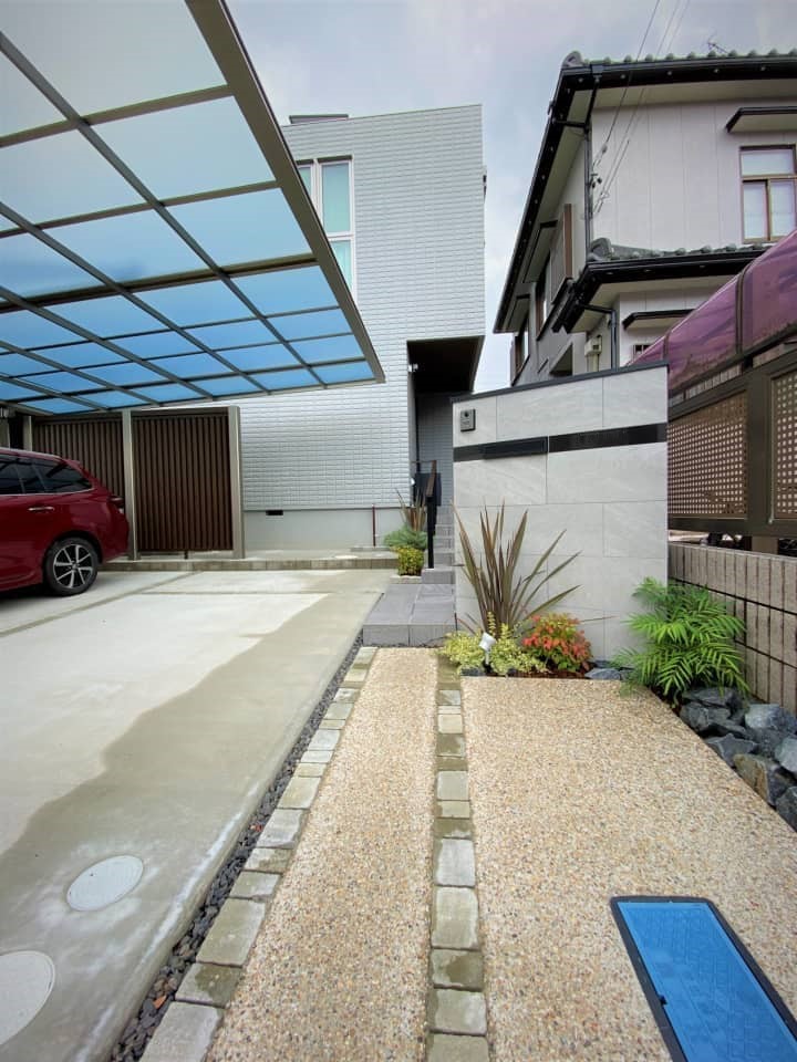 カーポートの柱を片側に寄せて敷地内の制限がなくなりスッキリと使い勝手の良い施工事例です。