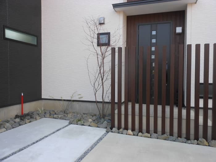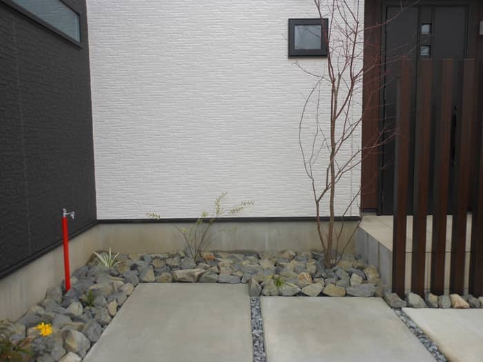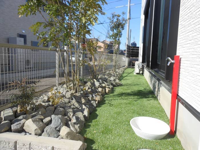 江南市H様邸 既設を活かしたシンプルモダンリフォーム事例 投稿日:2016.03.17 最終更新日:2025.09.16 リフォーム外構モダン外構シンプルモダン門・アプローチ庭・植栽砂利敷・割栗石門扉・門柱植栽・植木駐車場・カーポートカーポート愛知県江南市 既設を利用したリフォーム事例です。 玄関ポーチの前に木目調のアルミ角材を立て、目隠し効果と 安全性に配慮しました。 また、既存のコンクリートにタイル調の仕上げをして、アプローチと 駐車場とのメリハリをつけました。 お庭はメンテナンスを考え、人工芝を敷きました。 ▼Before 施工概要 施工タイプリフォーム外構施工内容門・アプローチ, 庭・植栽, 砂利敷・割栗石, 門扉・門柱, 植栽・植木, 駐車場・カーポート, カーポート外構デザインモダン外構, シンプルモダンエリア愛知県, 江南市 事例一覧へ戻る この記事をシェアする