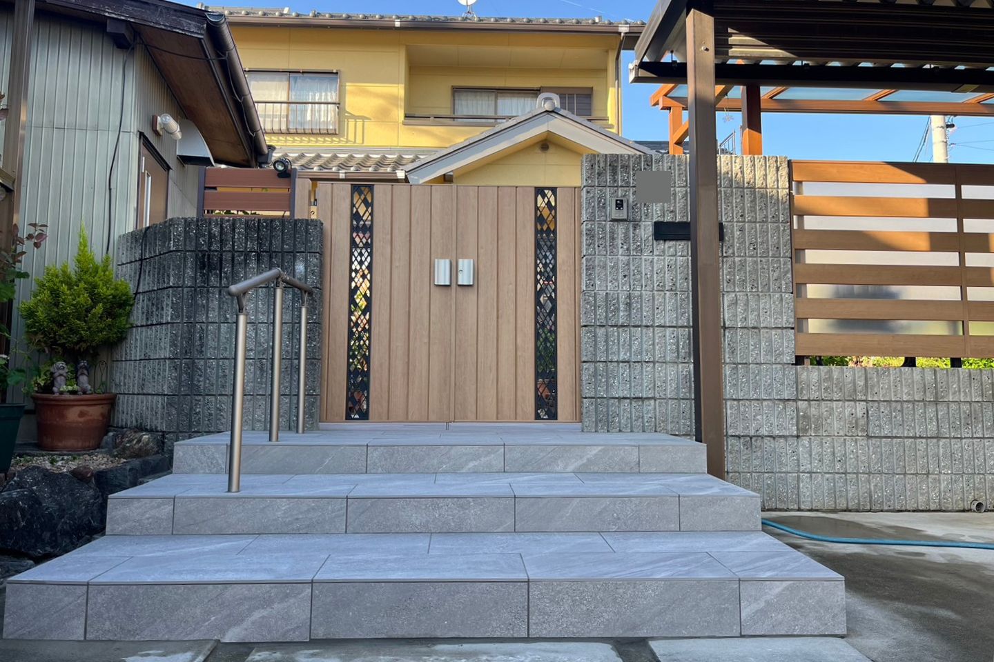 おしゃれな木目調門扉のある暮らし 投稿日:2025.10.23 最終更新日:2025.10.05 リフォーム外構ナチュラル外構アプローチ門扉・門柱階段愛知県江南市 施工概要 施工タイプリフォーム外構施工内容アプローチ, 門扉・門柱, 階段外構デザインナチュラル外構エリア愛知県, 江南市 株式会社堀央創建担当者 プランナーのご提案 ✰門扉はLIXIL 開き門扉AA 木目タイプ「こもれび」を🌼 開閉のしやすさと防犯性を両立した開き門扉! ★アプローチにはアベルサタイル(300×600)を施工し、落ち着いた雰囲気に! 周囲に植栽や花壇を添えることで、季節ごとに表情が変わるガーデニングを楽しめます🌿 事例一覧へ戻る この記事をシェアする