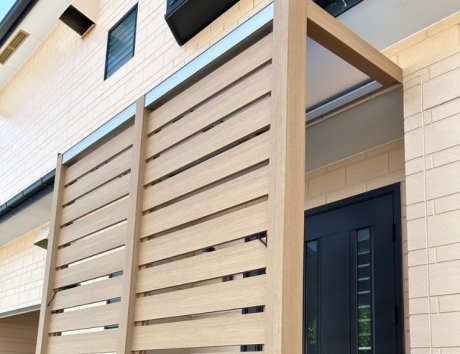 玄関前の視線をスマートに遮断する|モダンなファサード 投稿日:2026.03.28 最終更新日:2026.03.28 リフォーム外構目隠しフェンス目隠し効果愛知県一宮市 施工概要 施工タイプリフォーム外構施工内容目隠しフェンスエリア愛知県, 一宮市 株式会社堀央創建担当者 プランナーのご提案 ✩アウタールーフでしっかりとした屋根空間を確保し、雨の日も快適に✨ ★熱線遮断ポリカを採用して夏の暑さ対策もばっちり😊 ✩アウタールーフ正面にはデザインパネルをプラス! ★目かくしフェンスとしても機能するスタイリッシュなアクセントが玄関まわりをグレードアップ🫡 事例一覧へ戻る この記事をシェアする